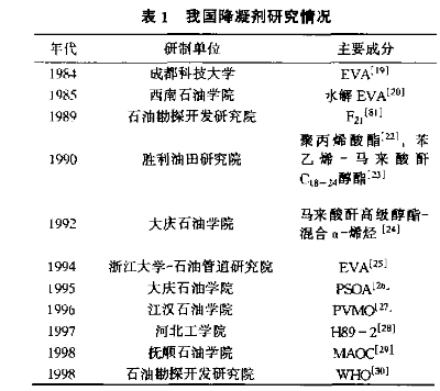 我國對降凝劑的研究及生產(chǎn)比發(fā)達(dá)國家落后數(shù) 十年,1984年才開始見諸文獻(xiàn) 近 20年來 ,
